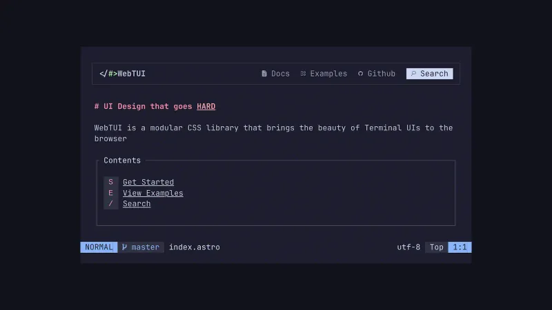 • WebTUI is a modular CSS library that brings the beauty of Terminal UIs to the browser. Navigate their site using the provided keyboard commands!