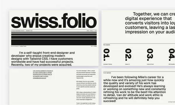 Bold, minimalist portfolio template that blends brutalist typography with clean, developer-focused design.